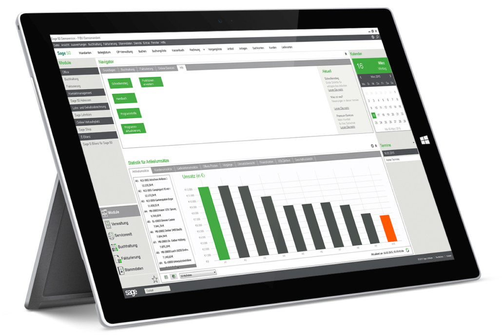 wie Sage 50 Versand, Sage 50 Stücklisten, Sage 50 Vertrag, Sage 50 Intrastat – um nur einige zu nennen – komplementieren das Leistungsspektrum.